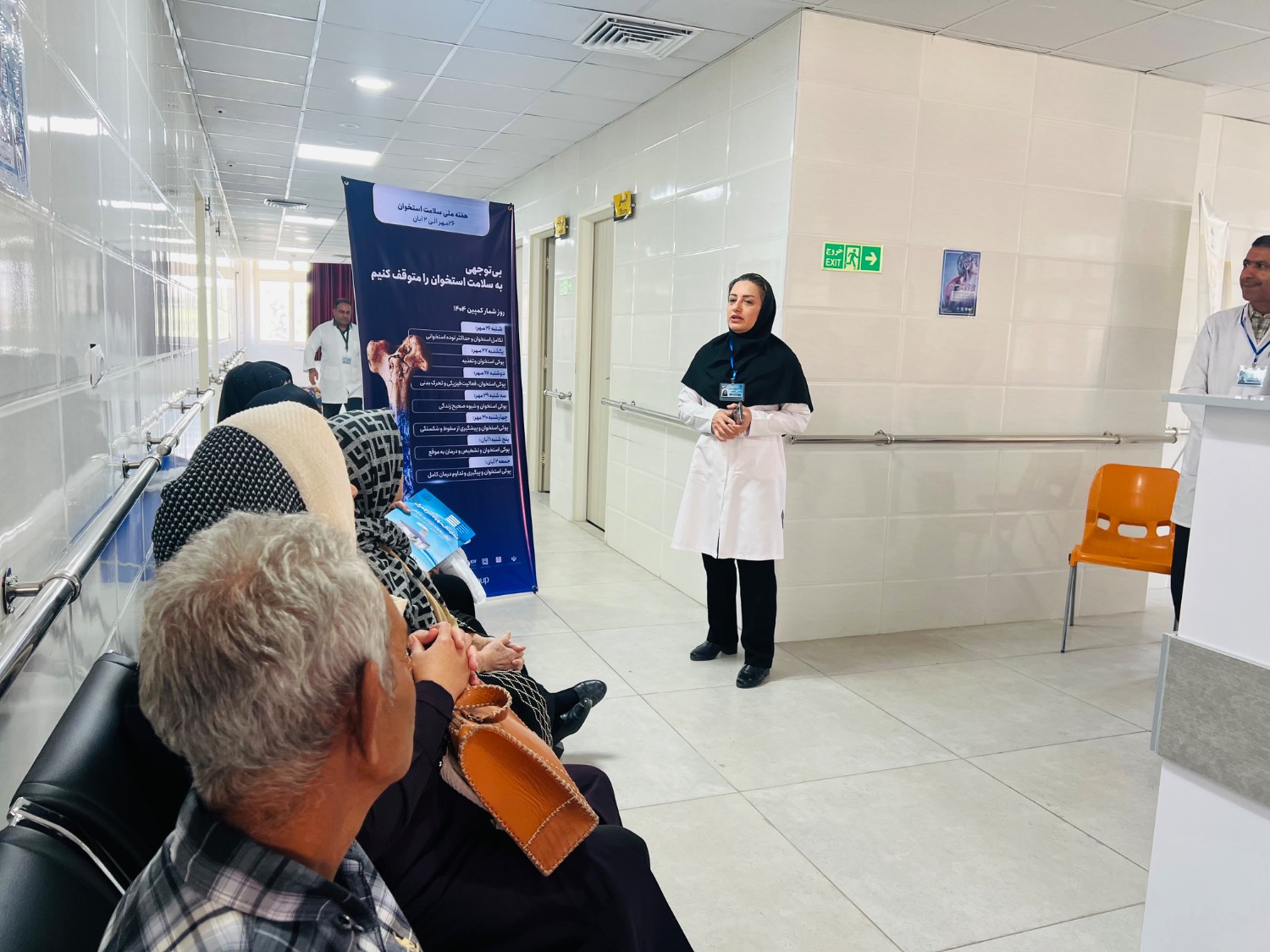 در روز سوم از هفته سلامت استخوان جهت مراجعین به کلینیک پوکی استخوان مرکز آموزشی درمانی بیمارستان چمران کلاس آموزشی فعالیت فیزیکی وتحرک بدنی توسط کارشناس فیزیوتراپی و تغذیه سالم توسط دکترای تغذیه بیمارستان برگزارگردید و از مراجعین با شیر و ویتامین دی پذیرایی گردید.